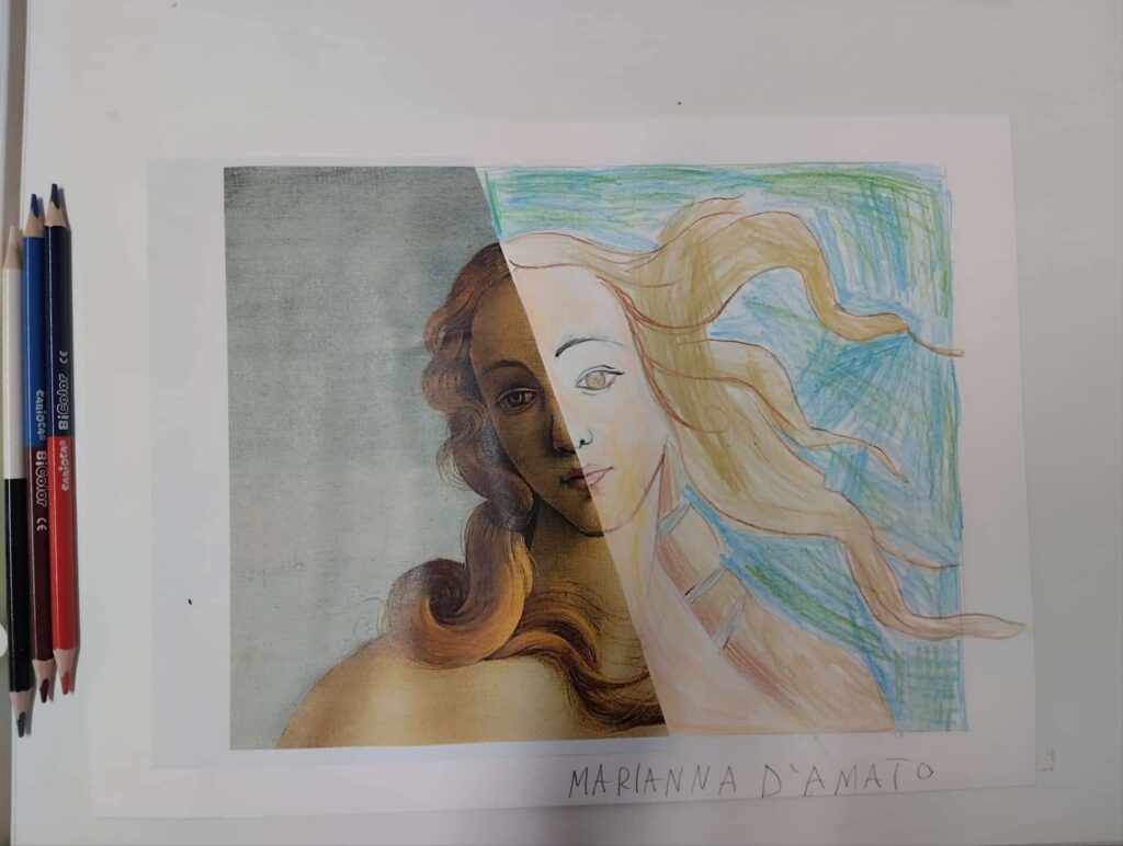 Accompagnati con entusiasmo dall’educatrice Carla Passarelli nei loro primi passi nel mondo dell’arte, i bambini hanno disegnato la Venere di Botticelli, cogliendo in pieno l’espressione sognante e un po’ malinconica con cui la dea emerge dalle onde marine.