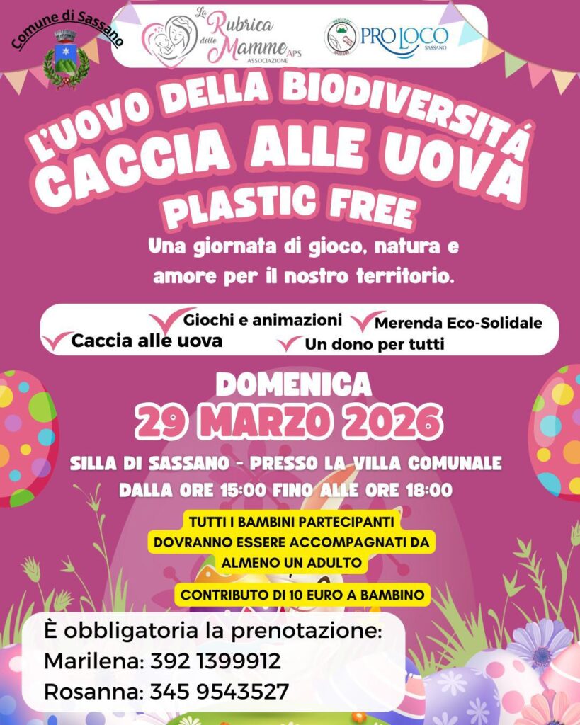 Una giornata all’insegna del divertimento, della sostenibilità e della condivisione: domenica 29 marzo 2026 la Villa Comunale di Silla, a Sassano, ospiterà l’evento “L’Uovo della Biodiversità”, iniziativa pensata per coinvolgere famiglie e bambini in un’esperienza educativa e ricreativa.