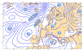 Spiega brevemente che cosa rappresenta: la distribuzione della pressione atmosferica, dei fronti, dei centri di alta e bassa pressione e della direzione dei venti su scala nazionale o europea.