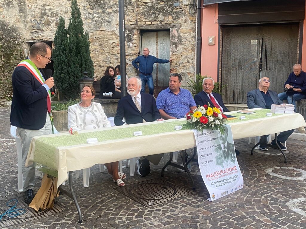 «Questa non è soltanto un’intitolazione, ma un gesto di riconoscenza verso chi, pur lasciando la propria terra, non dimenticò mai le radici – ha dichiarato il sindaco Gianluca D’Aiuto –. Carmine Baldi rappresenta la forza e la dignità dell’emigrazione cilentana. Speriamo che la notizia arrivi fino a Taylor Swift, sua discendente: accoglierla qui sarebbe straordinario».