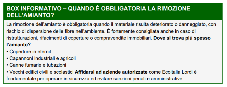 manufatti deteriorati possono rilasciare fibre pericolose per la salute. Ecoitalia Lordi interviene con