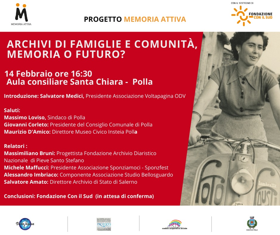 L’Associazione Voltapagina insieme alla Proloco di Polla, il Comune di Polla e la Cooperativa sociale Iris stanno realizzando il Progetto “Memoria Attiva”, sostenuto dalla Fondazione con il Sud.