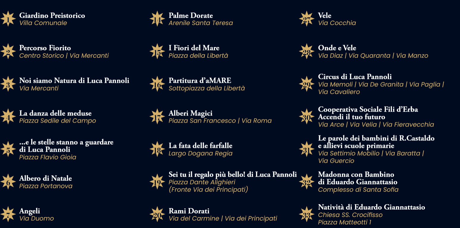 Tra le opere luminose spiccano nuove installazioni immersive e percorsi tematici che accompagneranno visitatori e famiglie tra le vie principali della città. Un itinerario che unisce tradizione, innovazione e un forte richiamo al patrimonio culturale campano.