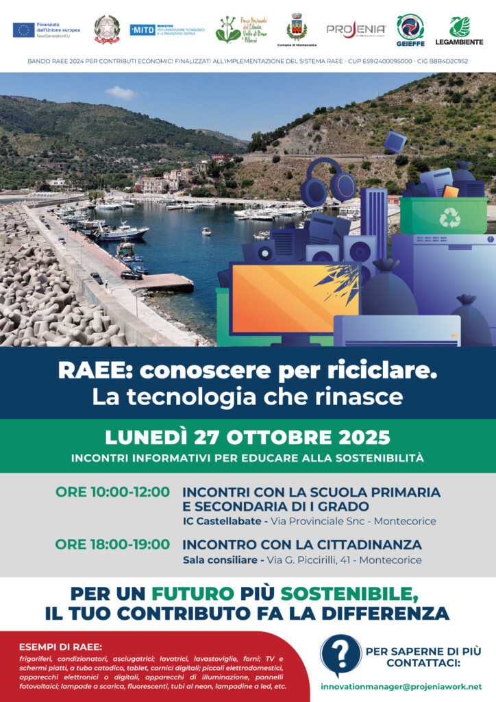 L’iniziativa, dal titolo “RAEE: conoscere per riciclare. La tecnologia che rinasce”, si terrà lunedì 27 ottobre 2025 e coinvolgerà studenti, cittadini e istituzioni, con l’obiettivo di diffondere una maggiore consapevolezza sull’importanza del corretto smaltimento dei dispositivi elettronici e sull’economia circolare.