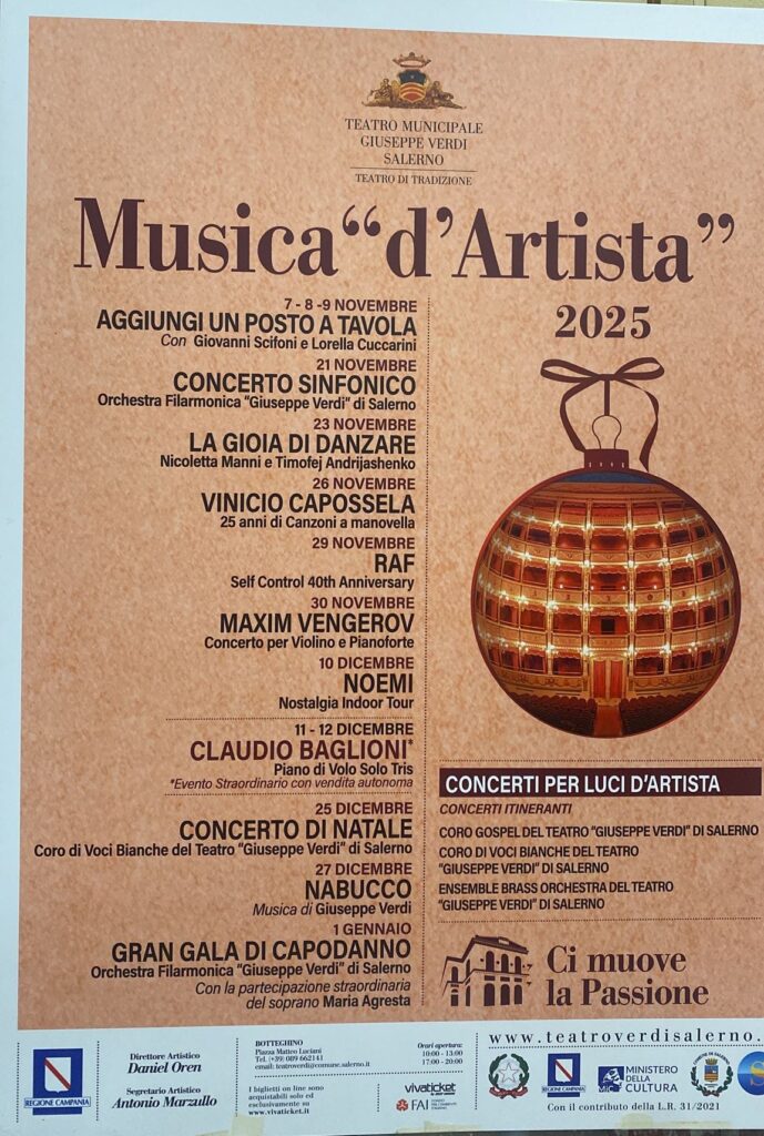 La rassegna si inserisce nel calendario delle iniziative legate a Luci d’Artista, contribuendo ad ampliare l’offerta culturale e turistica della città nel periodo natalizio e a valorizzare ulteriormente il ruolo di Salerno come polo di attrazione artistica e musicale.