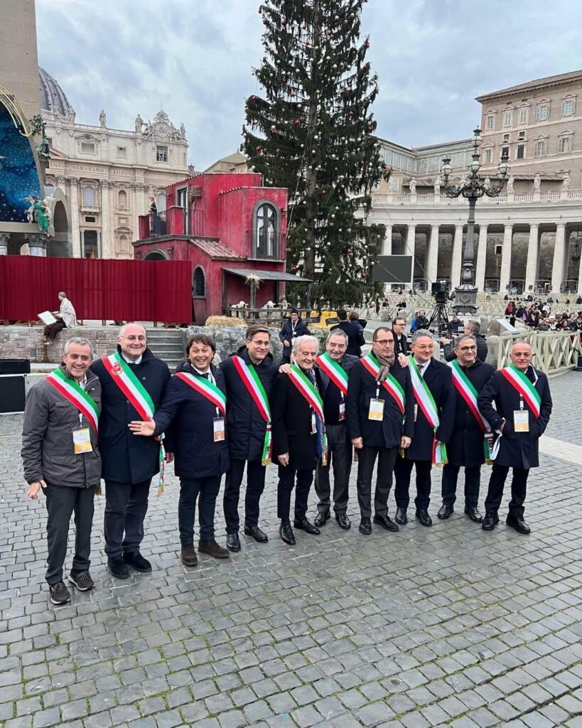 Un momento di forte valore simbolico e istituzionale ha visto protagonisti ieri a Roma i sindaci dell’Agro nocerino-sarnese, presenti alla cerimonia di scoprimento del Presepe in Piazza San Pietro, alla presenza del Santo Padre. L’opera è stata donata alla Santa Sede dalla Diocesi di Nocera Sarno, come espressione delle tradizioni e dell’identità del territorio.