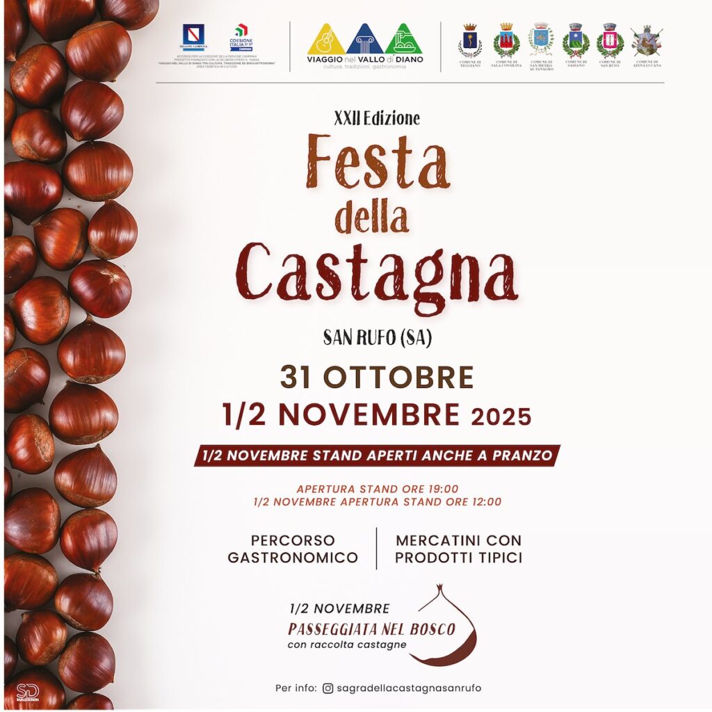 “Siamo giunti alla 22ª edizione della nostra Sagra della Castagna, un prodotto simbolo del territorio. Il merito è dei sanrufesi, che ogni anno dedicano tempo e passione per mantenere viva questa tradizione. Ringrazio il Comune capofila Teggiano e il sindaco Michele Di Candia per il supporto ottenuto attraverso il progetto Viaggio nel Vallo di Diano, che ci ha permesso di accedere ai fondi regionali indispensabili per l’organizzazione”.