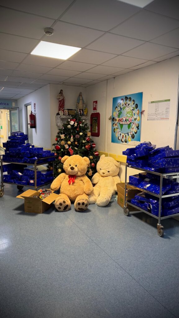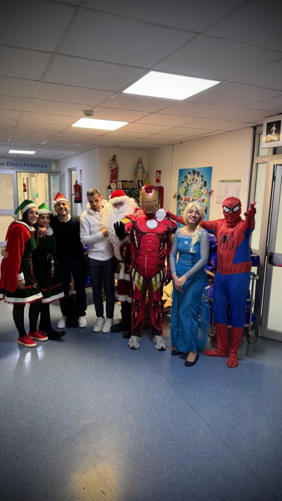 Metà della somma è stata utilizzata per l’appuntamento del 23 dicembre al Ruggi: con i fondi raccolti sono stati acquistati giocattoli e calze natalizie, successivamente consegnati ai piccoli pazienti. Fondamentale la collaborazione con l’Associazione Arcobaleno Marco Iagulli, che ha garantito il supporto logistico e umano, portando in reparto Babbo Natale, elfi e supereroi.