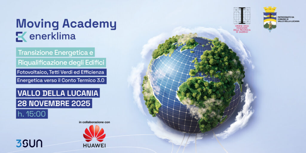L’appuntamento, patrocinato dal Comune, realizzato in collaborazione con l’Ordine degli Ingegneri della Provincia di Salerno, prevede la partecipazione di Huawei Digital Power Italy e 3SUN, due realtà impegnate nello sviluppo di tecnologie per la produzione e la gestione intelligente dell’energia. Il seminario rappresenta un’occasione di confronto tecnico e di aggiornamento professionale.
