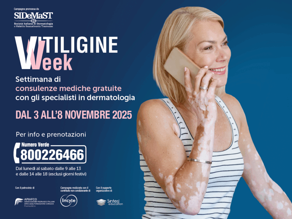 «La vitiligine è stata a lungo considerata solo una condizione estetica, mentre si tratta di una vera e propria malattia cronica autoimmune, che si manifesta quando il sistema immunitario attacca erroneamente i melanociti, ovvero le cellule responsabili della produzione di melanina, il pigmento che conferisce colore alla pelle. La malattia causa non solo la comparsa delle caratteristiche macchie bianche sulla pelle ma può talora essere associata ad altri disturbi, quali disfunzioni della tiroide, diabete mellito e alopecia areata” – ha commentato Giovanni Pellacani, Presidente della SIDeMaST, Società Italiana di Dermatologia medica, chirurgica, estetica e di Malattie Sessualmente Trasmesse -. “Per questo, è fondamentale che i pazienti si confrontino con uno specialista in dermatologia per comprendere la propria condizione e discutere come trattarla e gestirla al meglio, specialmente oggi che la ricerca ha aperto nuove possibilità terapeutiche. La Vitiligine Week nasce proprio dall’impegno di SIDeMaST nel promuovere la conoscenza della malattia, nel sostenere le persone che vivono con la vitiligine, incoraggiando il loro confronto con gli operatori sanitari per un miglior trattamento della malattia e combattere lo stigma che ancora la accompagna.»